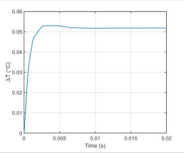 在ComsolMultiphysics®中進行的熱模擬驗證了DualMEMS模具結(jié)構(gòu)的固有優(yōu)勢。圖1顯示了在應(yīng)用入射到DualMEMS芯片一側(cè)的對流熱通量期間TempFlat諧振器和溫度傳感器之間的溫度偏移。這種高度不對稱的熱通量為基于DualMEMS的設(shè)備提供了最糟糕的情況,因為施加的熱源更接近石英晶體諧振器之一,因此在TempFlat諧振器和溫度傳感器諧振器之間強制出現(xiàn)熱梯度(盡管很?。T趯嶋H情況中,熱通量將入射到所有側(cè)面,使得兩個諧振器對稱地加熱。盡管如此,DualMEMS結(jié)構(gòu)仍然顯示出對熱干擾非常有彈性。在該示例中,如圖1所示,熱通量在TempFlat和溫度傳感器諧振器之間僅產(chǎn)生52mK的溫度偏差,并且在小于10ms之后溫度穩(wěn)定到其穩(wěn)態(tài)值。然而,當(dāng)受到入射在壓電石英晶體頂部的相同熱通量時,基于石英的振蕩器不那么堅固。圖2表明石英晶體和CMOS IC與溫度傳感器之間的溫度偏差要大得多,幾乎為3.5K,并且需要將近1s才能達到此值。顯然,結(jié)果表明Elite Platform DualMEMS架構(gòu)的熱性能比典型的石英TCXO好幾個數(shù)量級。