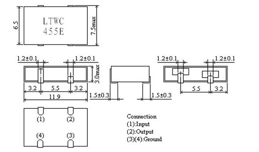 陶瓷濾波器,貼片陶瓷晶振,LTWC455E,千赫茲壓電陶瓷貼片型產(chǎn)品,一般電子產(chǎn)品用標準頻率公差型,利用本公司獨創(chuàng)的封裝技術,實現(xiàn)了千赫頻率陶瓷濾波器,貼片陶瓷濾波器體積小,只有4.0mm max.厚度,且有更小的貼裝面積,方便 PCB 彈性設計,有多種帶寬可供選擇,組件可用自動機貼裝,可用波峰焊,耐水洗,并且此濾波器可以與村田晶振CFUCG 系列相容,此種新式濾波器結(jié)構(gòu)可以更完美的安裝在可移動的通訊產(chǎn)品中,如手機,袖珍型呼叫器等消費類電子產(chǎn)品.