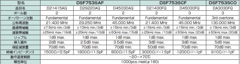 KDS貼片濾波器,聲表面濾波器DSF753S,對(duì)講機(jī)濾波器,外形尺寸:7.0×5.0×1.3,小型?輕量(0.15g)SMD類(lèi)型通過(guò)單體實(shí)現(xiàn)4POLE特性,保證衰減量特性卓越耐撞擊性,耐振動(dòng)性卓越,被應(yīng)用于商務(wù)無(wú)線(xiàn)等無(wú)線(xiàn)通信機(jī),小型表面貼片型標(biāo)準(zhǔn)晶體諧振器,適用于寬溫范圍的辦公自動(dòng)化"1D21407AQ3",家電電器及汽車(chē)附件等領(lǐng)域。可對(duì)應(yīng)8MHz以上的頻率,在辦公自動(dòng)化,家電相關(guān)電器領(lǐng)域可發(fā)揮優(yōu)良的電氣特性,滿(mǎn)足無(wú)鉛焊接的回流溫度曲線(xiàn)要求.