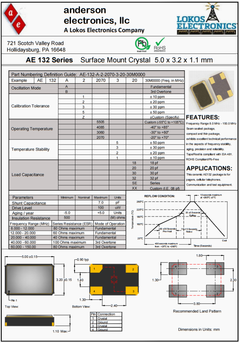 更多>>About Anderson ultra-reliable AE132 crystal oscillator