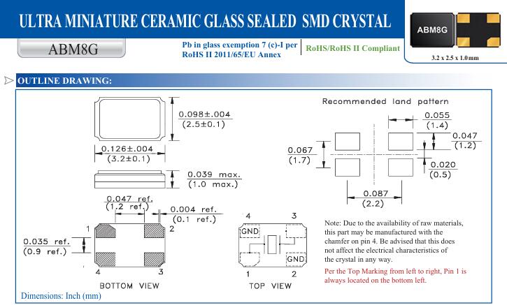 | ABM8G-24.000MHZ-B4Y-T | Abracon LLC | ABM8G | MHz Crystal | 24MHz | 4-SMD, No Lead | 0.126" L x 0.098" W (3.20mm x 2.50mm) |