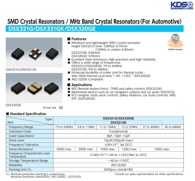 這款晶振的優(yōu)勢遠(yuǎn)不止于此,優(yōu)異的耐熱性、高精度和高可靠性是它的核心底氣.它提供廣泛的頻率范圍,搭配同系列的DSX320GE、DSX321GK型號(hào),覆蓋7.9至64MHz的頻率需求,滿足不同車載系統(tǒng)的使用要求.其中DSX320GESMD晶振型號(hào)更經(jīng)過3000次熱循環(huán)測試,焊點(diǎn)耐久性極強(qiáng),能輕松應(yīng)對車輛行駛中頻繁的溫度變化,始終保持穩(wěn)定運(yùn)行.
