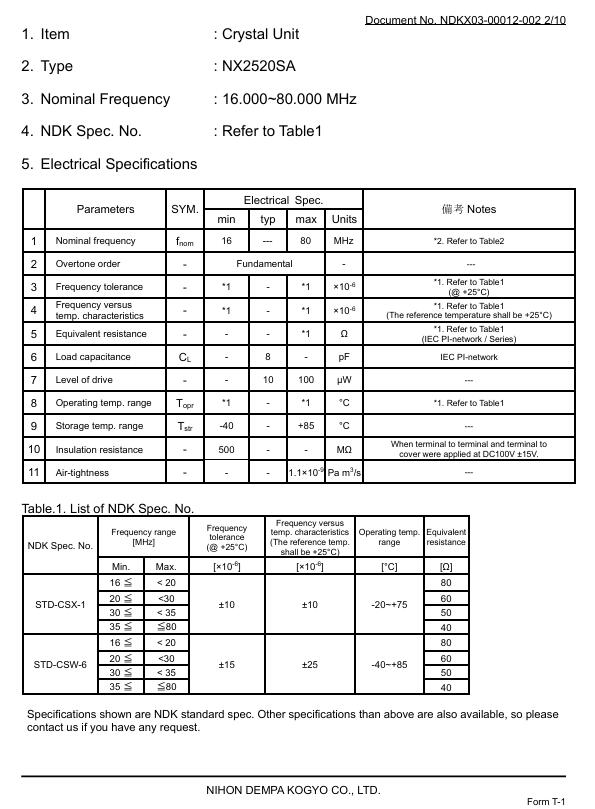| 晶振規(guī)格參數 | NX2520SA-32MHZ-STD-CSW-2無源晶振 |
