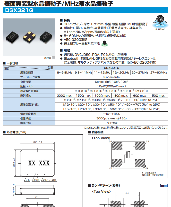 KDS石英晶體諧振器1C208000BC0對(duì)應(yīng)型號(hào)DSX321G-8M