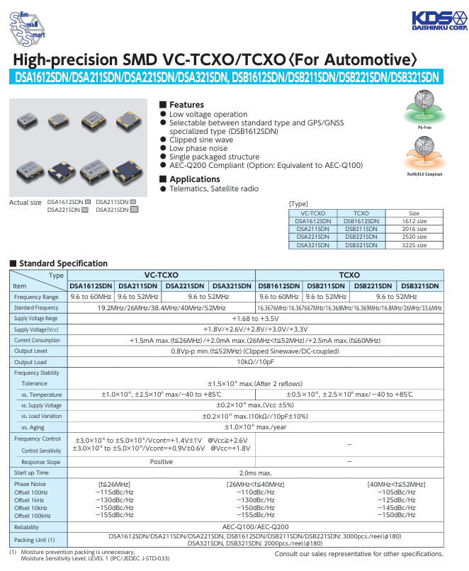 序列號(hào) 溫補(bǔ)晶振,產(chǎn)品系列 DSB1612SDN