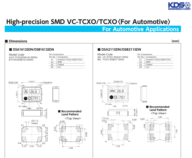 1XXH26000MCB溫補(bǔ)晶振,DSB1612SDN日本晶振,KDS大真空晶振石英晶體振蕩器