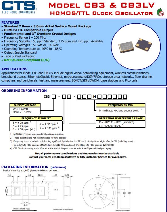 | CB3-3I-33M3330 | CTS-Frequency Controls | CB3 | 33.333MHz | ±50ppm |