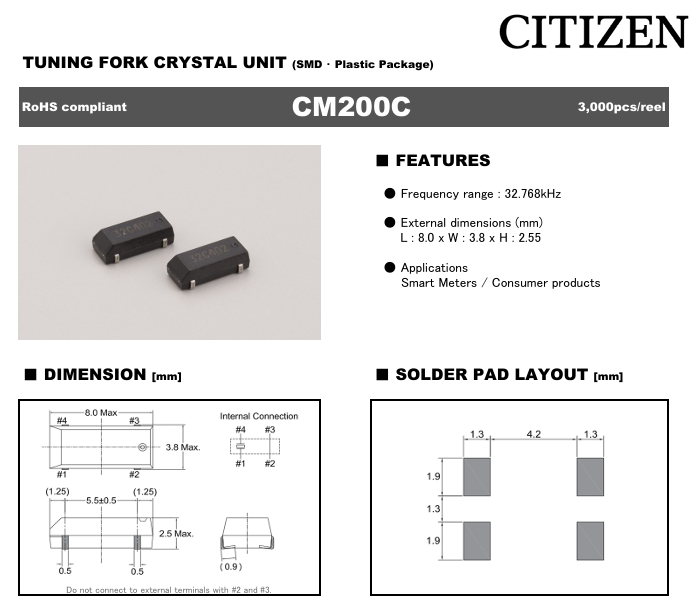 更多>>CM200C32.768KDZF-UT西鐵城Citizen晶振8038 32.768K 12.5PF 20PP