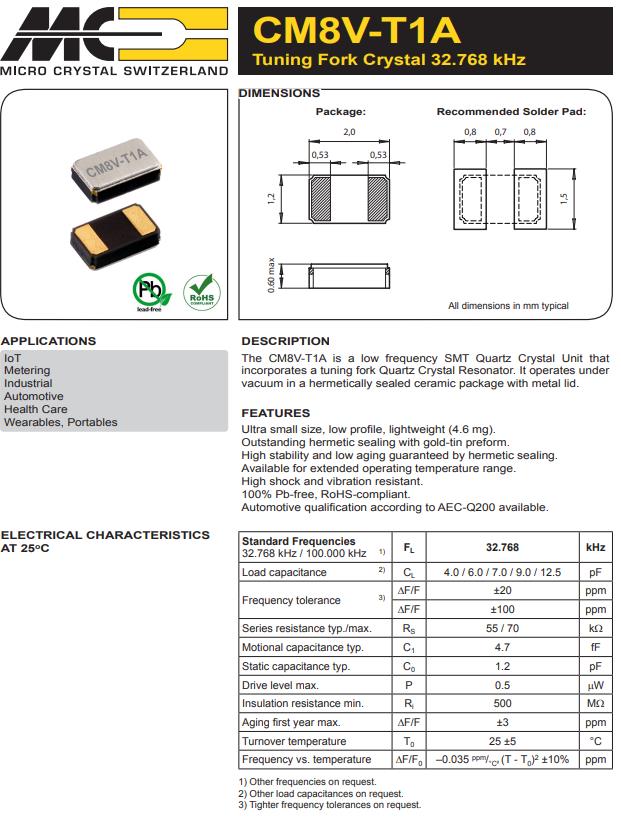 | CM8V-T1A-32.768k-12.5pF-20PPM-TB-QA | Micro晶振 | 晶體 32.768 kHz 12.5 pF +/-20 PPM AEC-Q200 |