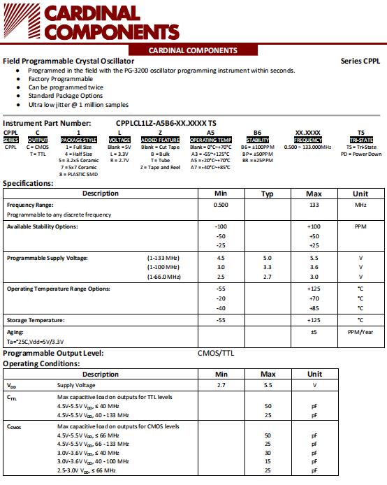 更多>>CPPLC7L-A7BR-16.0TS超低抖動的CMOS振蕩器是測試設備最佳之選