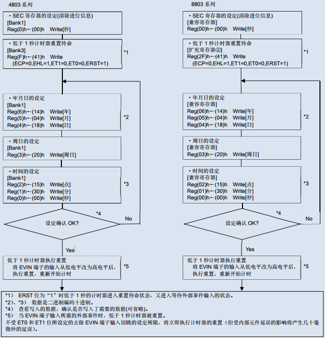 執(zhí)行重置時(shí)不清除進(jìn)位信息,為此請(qǐng)?jiān)谠O(shè)定秒寄存器后不到1秒的時(shí)間內(nèi)重置低于1秒的計(jì)時(shí)器;
