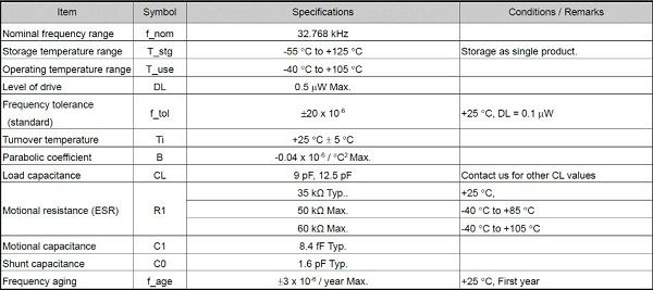 它的具體性能特性小編就不多說(shuō)了,直接上參數(shù)規(guī)格表,懂的朋友絕對(duì)會(huì)眼前一亮的.但是應(yīng)用領(lǐng)域還是要說(shuō)一下的,畢竟這關(guān)系到這款產(chǎn)品的主要應(yīng)用領(lǐng)域,這款產(chǎn)品就是應(yīng)用在副時(shí)鐘無(wú)線模塊,穿戴式產(chǎn)品,副時(shí)鐘低功耗MCU等功能模塊或是設(shè)備上.參數(shù)如下圖: