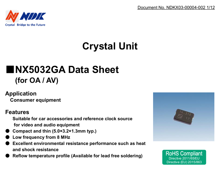 更多>>日本NDK晶振NX5032GA-8.000M-STD-CSU-1 5032 8M寬溫晶振