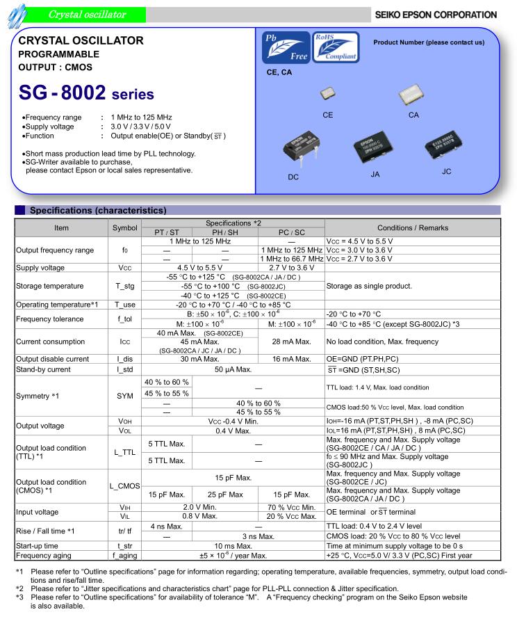 SG-8002JA10MSHM愛普生晶振,可編程晶振,有源晶振聲表面諧振器