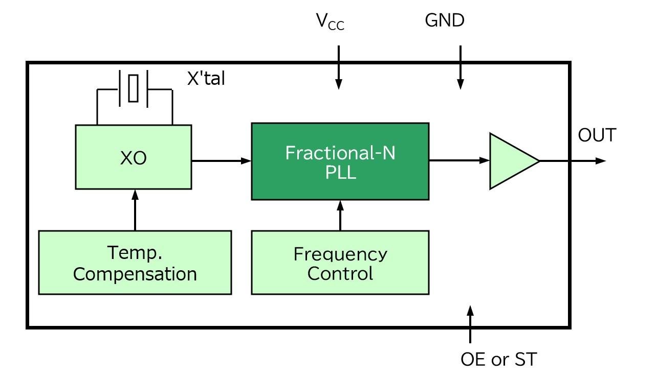 利用愛普生的新型內(nèi)部IC(在125MHz的情況下)實(shí)現(xiàn)1.1ps的典型相位抖動(dòng)(12kHz至20MHz)