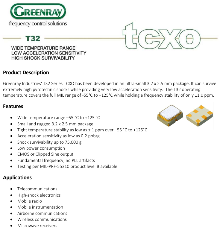 此文關(guān)鍵字: 美國(guó)Greenray格林雷晶振