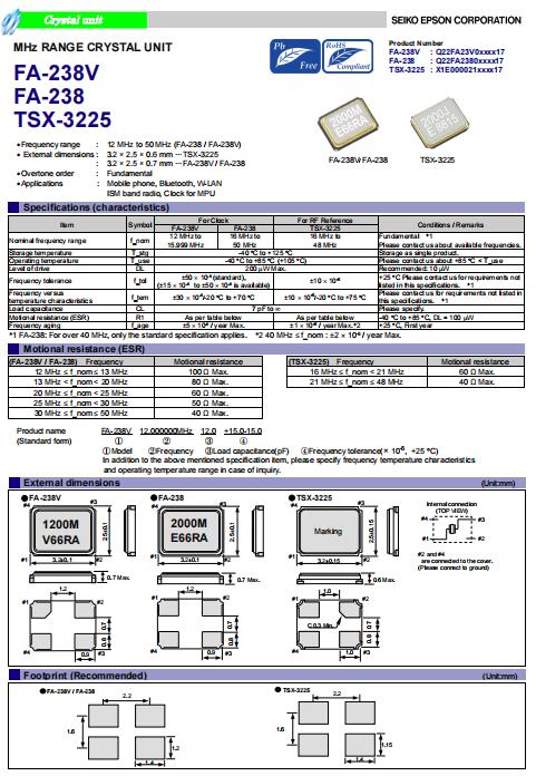 | X1E000021011916 | 3.2 x 2.5 x 0.6mm | TSX-3225 | 16.000000 MHz | 12 pF | +/-10 ppm | +/-20 ppm | -40 to +85 °C | ≤ 60 Ω |