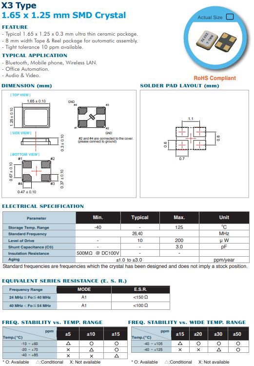 | X3AEELNANF-26.000000 | Taitien | X3 | MHz Crystal | 26MHz | -40°C ~ 85°C |