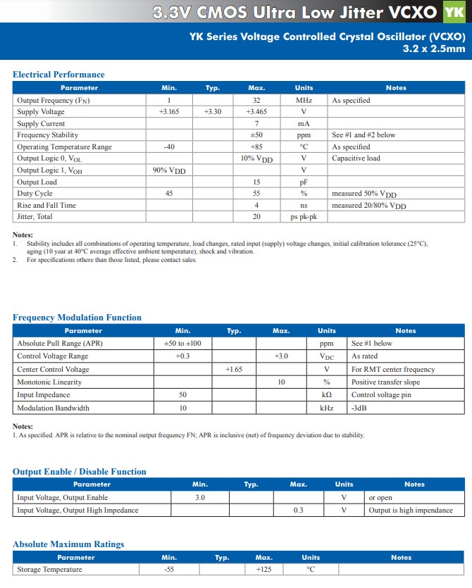 | YK 3.3V | None | CMOS | 1 至 66 | <2 ps RMS | 3.2 x 2.5 x 1.0 | 4 |